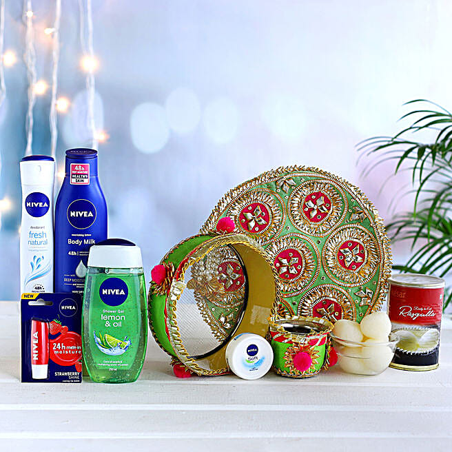Karwachauth Green Thali Set & Nivea Women Combo Hamper