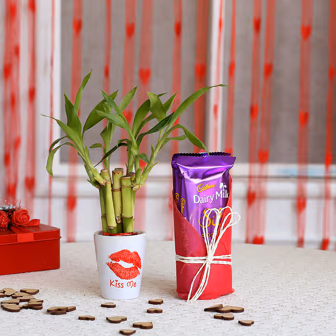 Kiss Day Special Lucky Bamboo Plant with Dairy Milk Silk