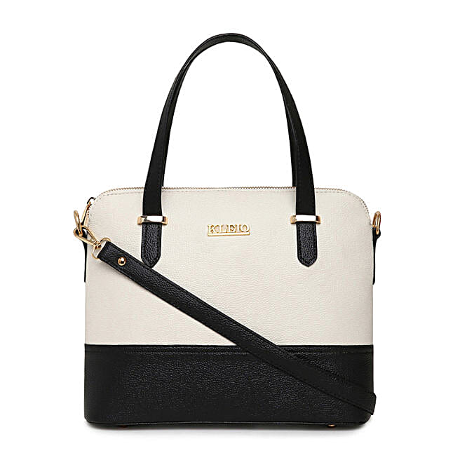 KLEIO Leatherette Twin Colour Hand Bag Black
