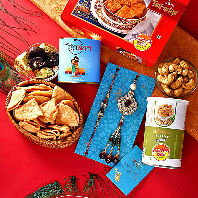 Kundan Crystal Lumba Rakhi Set & Tempting Treats