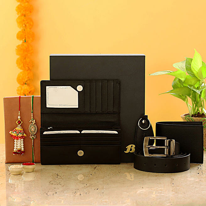 Kundan & Pearl Lumba Rakhi With Bata Wallet Combo