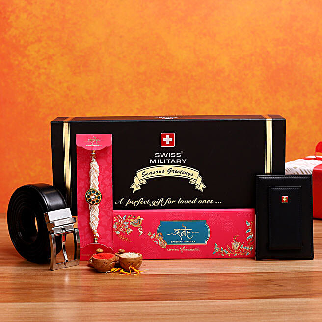 Kundan Rakhi & Swiss Military Goodies Hamper
