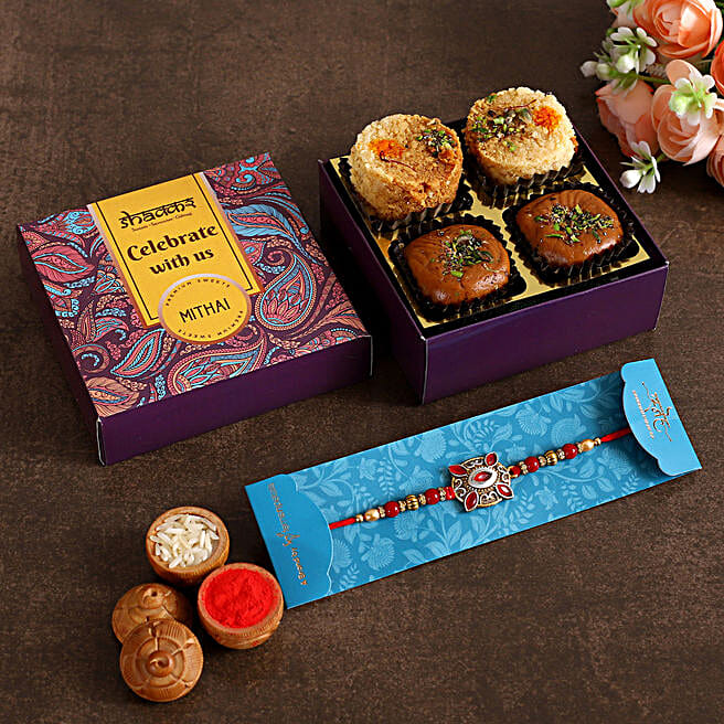 Kundan Rakhi With Milk Cake & Mathura Peda