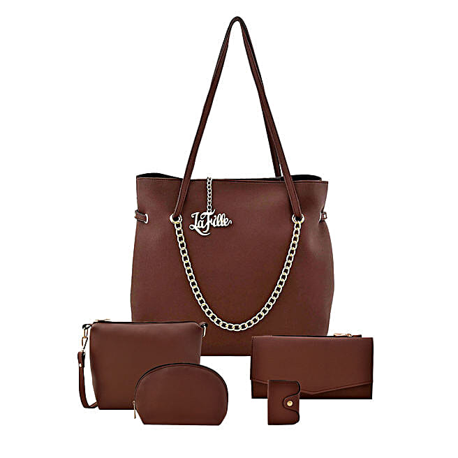 LaFille Brown Vogue Set of 5 Handbag