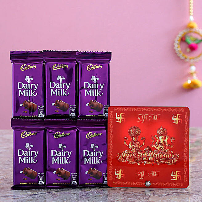 Lakshmi Ganesha Table Top And 6 Dairy Milk Chocolates Combo- C