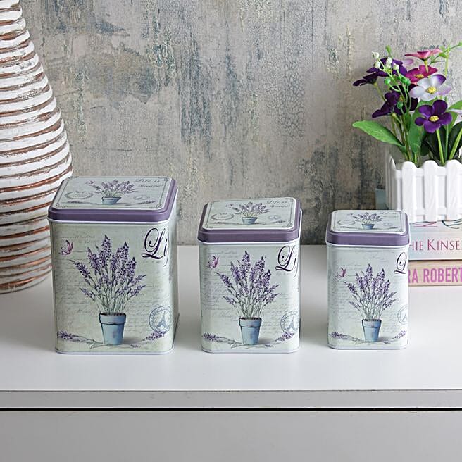 Lavender Beauty Vase Storage Tins
