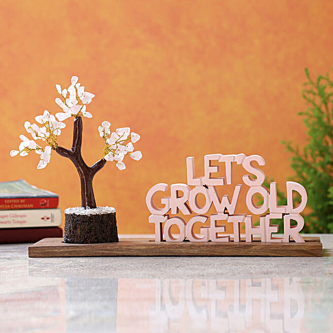 Let's Grow Old Together Table Top & Rose Quartz Wish Tree