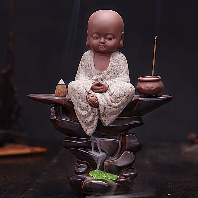 Lord Buddha Back Flow Incense Burner- Grey