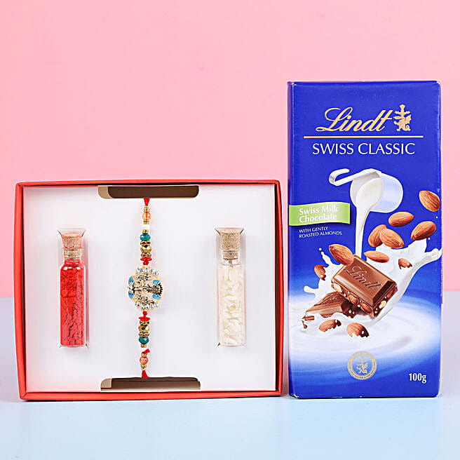 Lord Ganesha Rakhi With Lindt Roasted Almond Chocolate