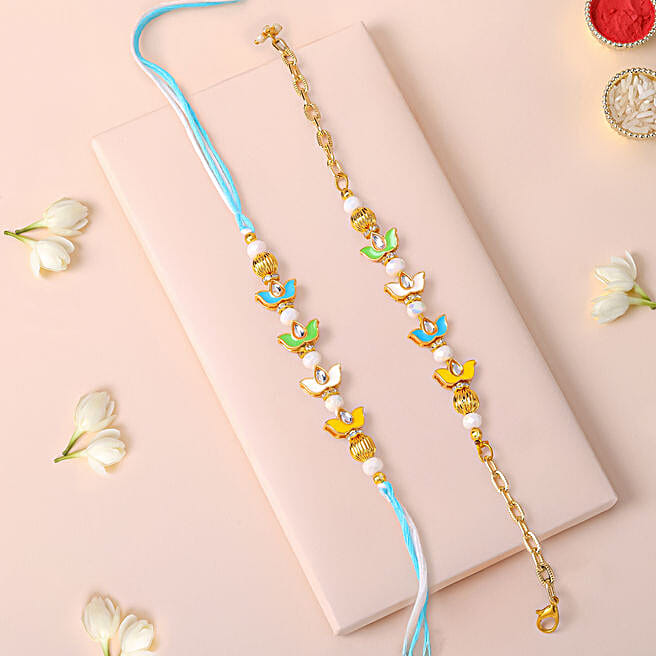 Majestic Kundan Work Bracelet Rakhi Set