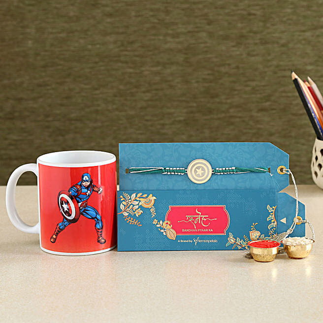 Marvel Captain America Metal Rakhi and Mug