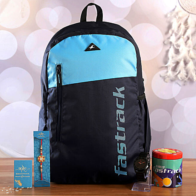 Meenakari Rakhi With Fastrack Backpack & Watch