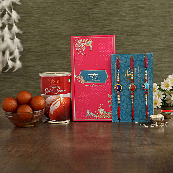 Meenakari Set of 3 Rakhi & Gulab Jamun