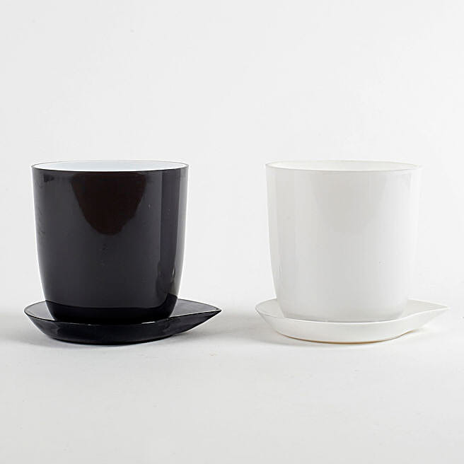 Melamine Cup & Saucer Vase Set Black & White