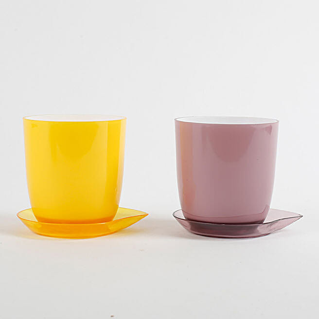 Melamine Cup & Saucer Vase Set Yellow & Onion