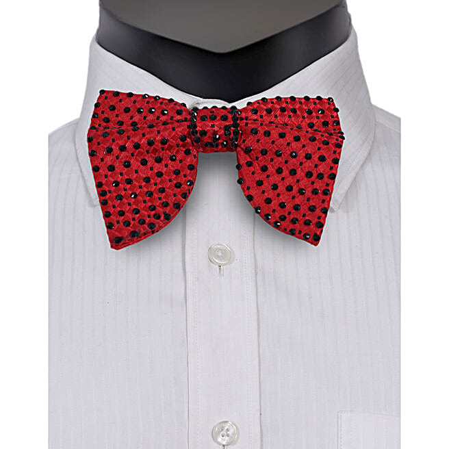 Men Tuxedo Red Stone Studded Bow Tie