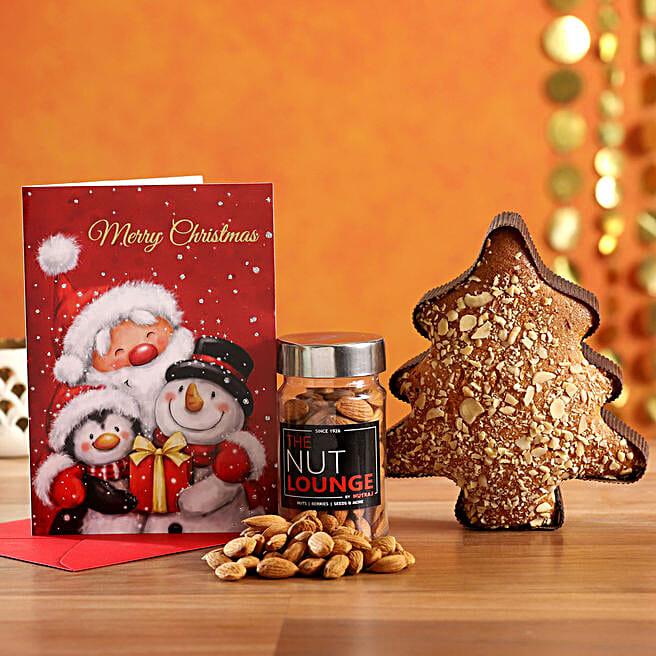 Merry Christmas Greeting Card With Almond & Dry Almond Cake