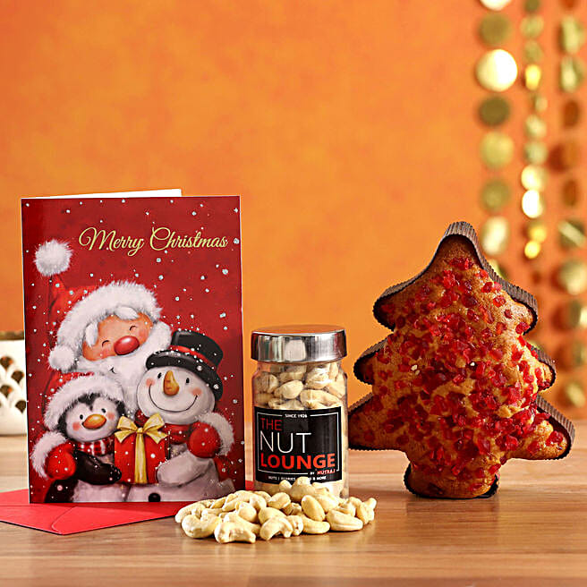 Merry Christmas Greeting Card With Cashew & Dry Fruit Cake