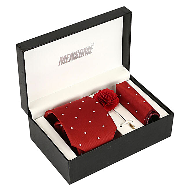 Microfiber Neck Tie & Pocket Square Gift Set- Red
