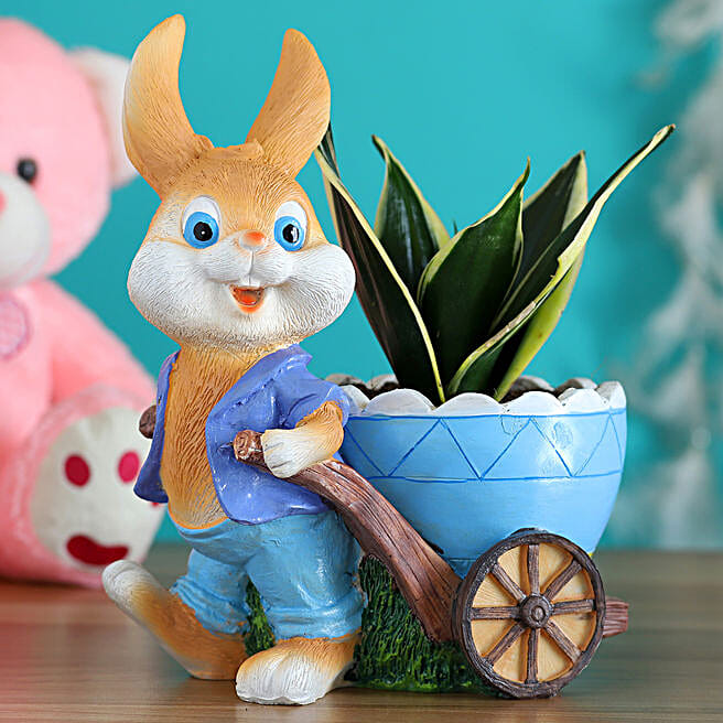 Milt Sansevieria Plant In Blue Shirt Rabbit Cart