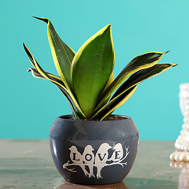 MILT Sansevieria Plant In Grey Printed Love Pot