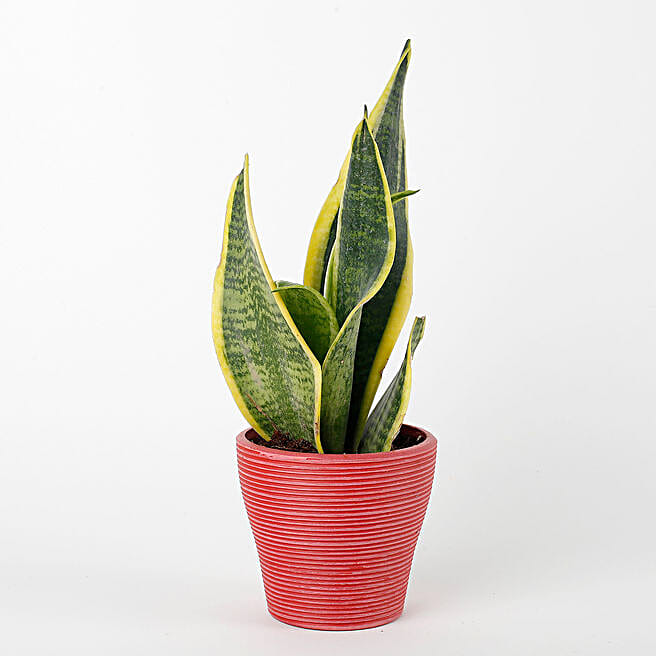 MILT Sansevieria Plant in Red Recycled Plastic Lining Pot