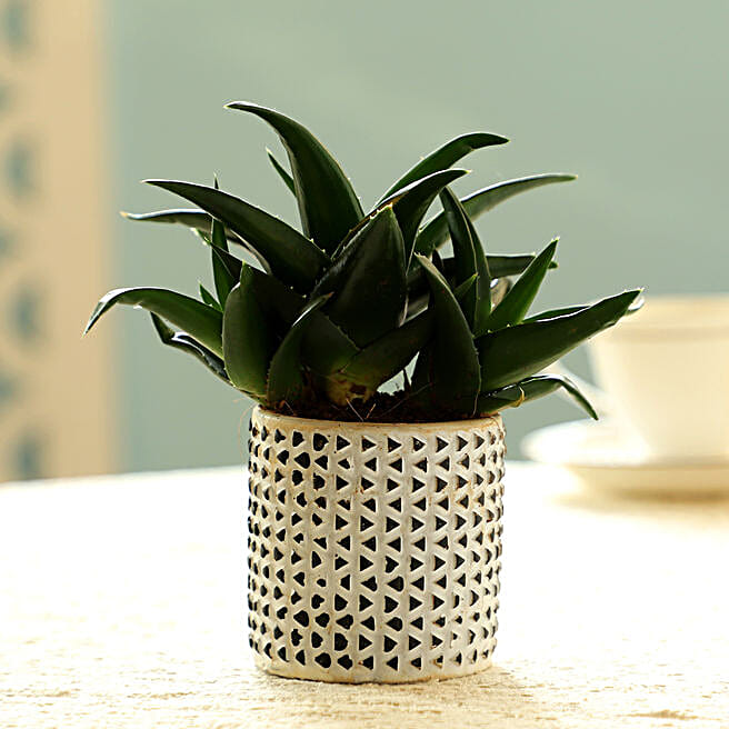Mini Aloe Vera In White Pot