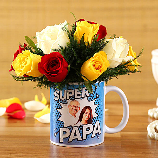 Mixed Roses In Super Papa Personalised Mug