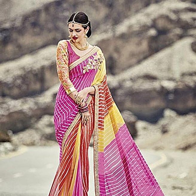 Multi Colored Printed Georgette Chiffon Saree