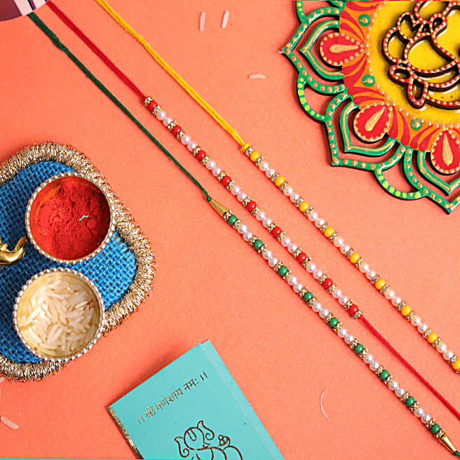 Multicolour Beads Rakhi Set N Ganesha Thali