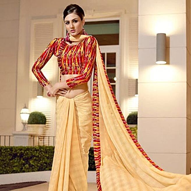 Multicoloured Chiffon Saree with a Worked Border