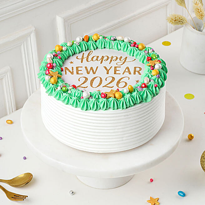 Happy New Year 2026 Butterscotch Photo Cake
