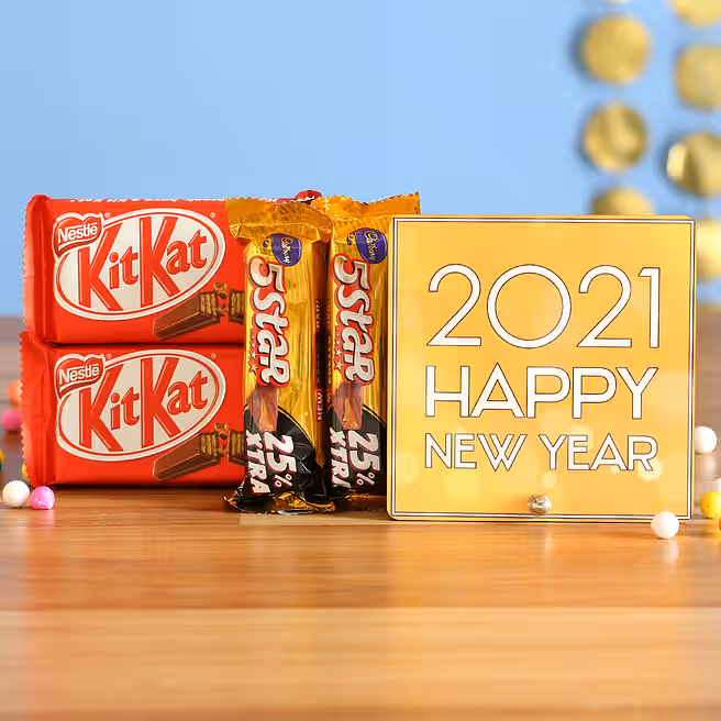 New Year Printed Table Top With Nestle Kitkat & Cadbury Chocolates