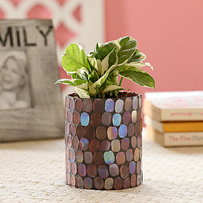 N'Joy Money Plant In Mosaic Art Glass Pot