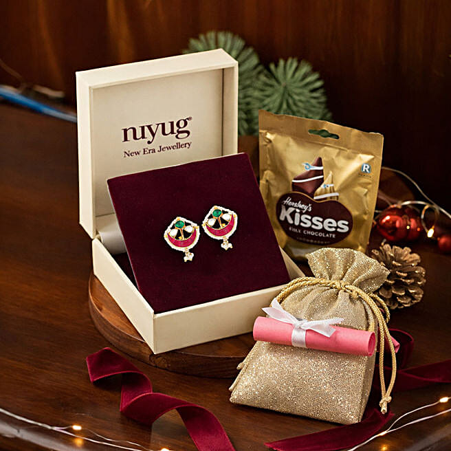 Nuyug Kundan n Pearl Stud Earrings Chocolate Giftset