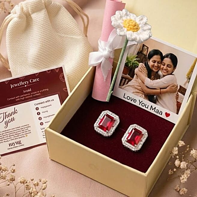 Nuyug Personalised Ruby Stud Jewellery Hamper for Mom