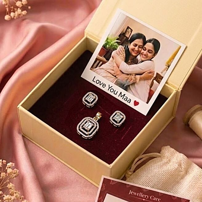 Nuyug Solitaire Diamond Pendant Set & Photo Gift for Mom