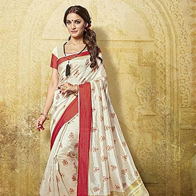 Off White Art Silk Traditional Woven Festive Saree