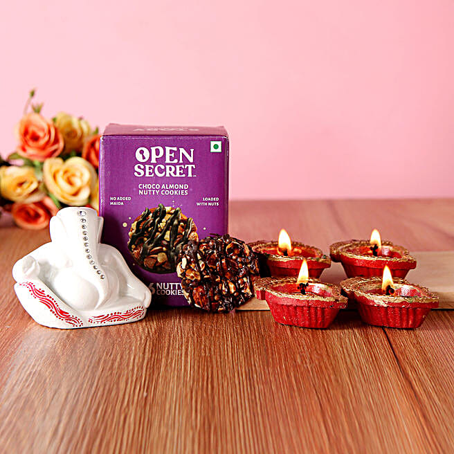 Open Secret Almond Cookies & White Ganesha Idol With Diyas
