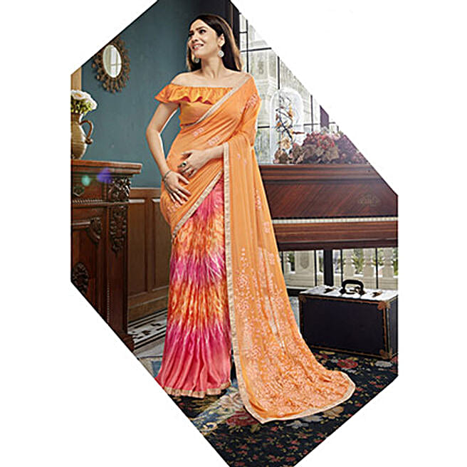 Orange Faux Georgette Embroidered Office Wear Sarees