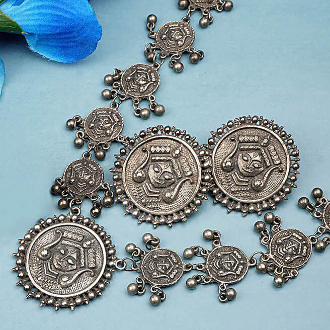 Oxidized Mandala Face Long Necklace Set