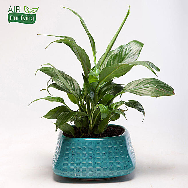 Peace Lily Plant in Blue Ceramic Pot