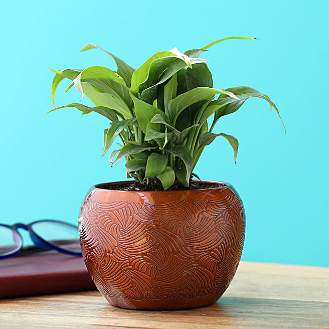 Peace Lily Plant In Brass Pot