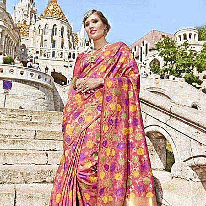 Peach Banarasi Silk Jacquard Saree
