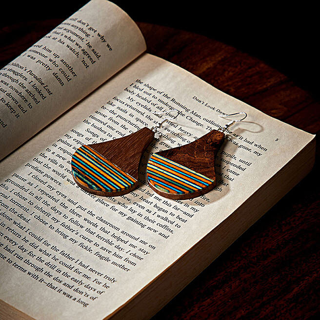 Pear Shaped Wooden Handmade Earrings