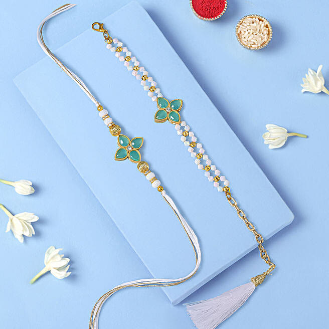 Pearl Blossom Rakhi Set for Bhaiya Bhabhi