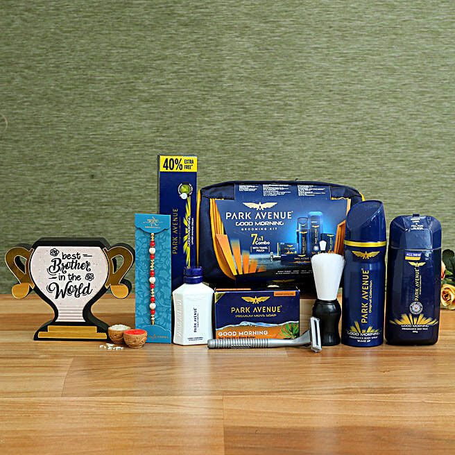 Pearl Rakhi and Grooming Kit With Best Brother Trophy