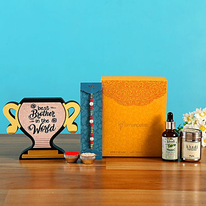 Pearl Rakhi and Khadi Face Care Kit With Trophy