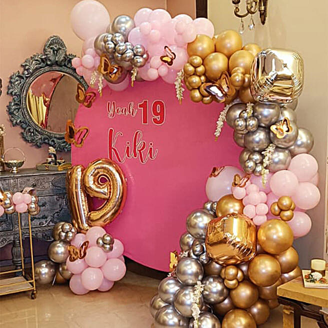 Personalised Balloon Garland Round Backdrop