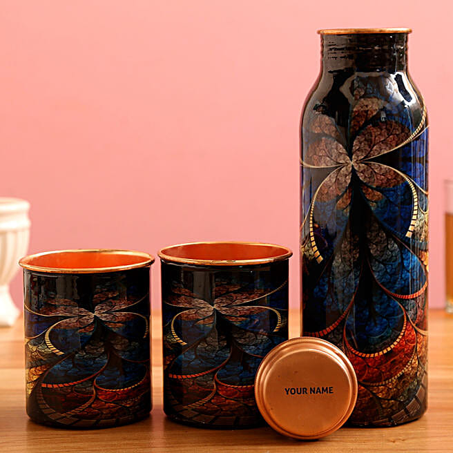 Personalised Beautiful Print Water Bottle With 2 Glasses